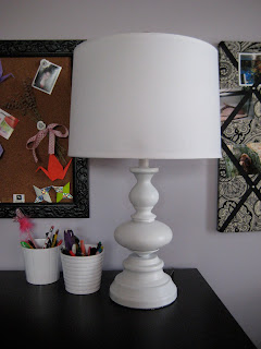 She took it home and gave it an updated and much more glamorous look. It probably took all of one hour to do. The after picture speaks for it self. Simple, stunning and I love the lines of this lamp.